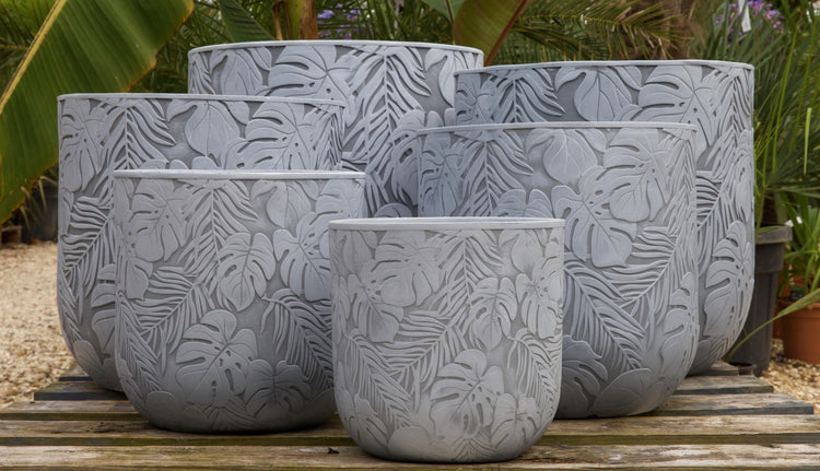Patterned Tropical Planter - White Grey - Stonelite / Fibreclay