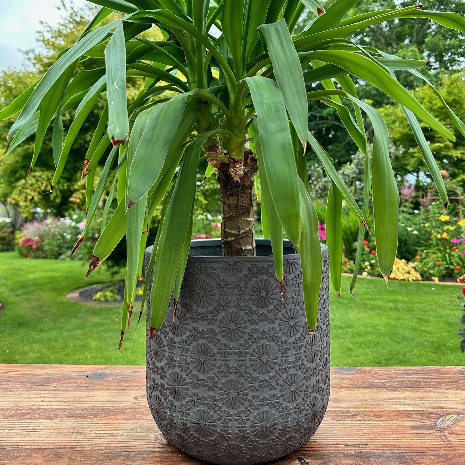 Patterned Flower Planter - Dark Grey - Stonelite / Fibreclay